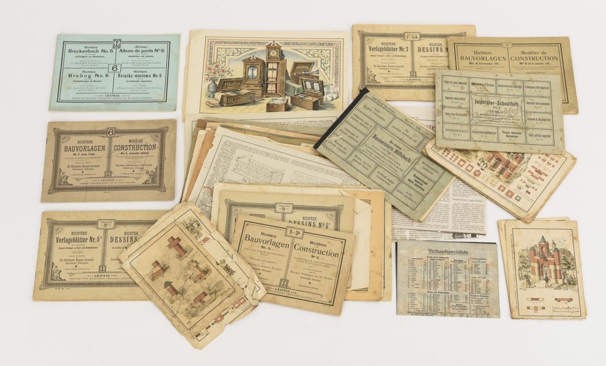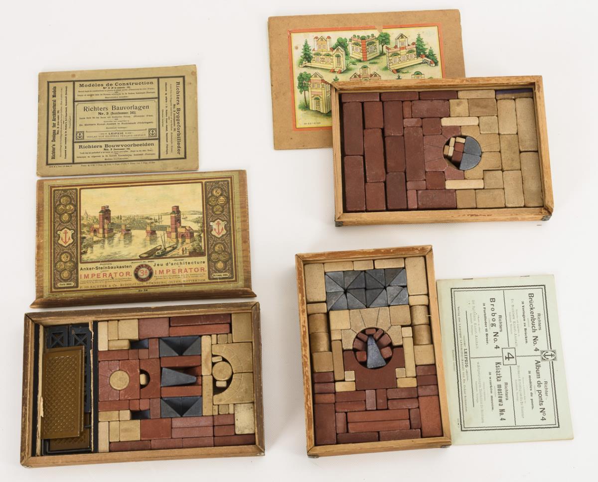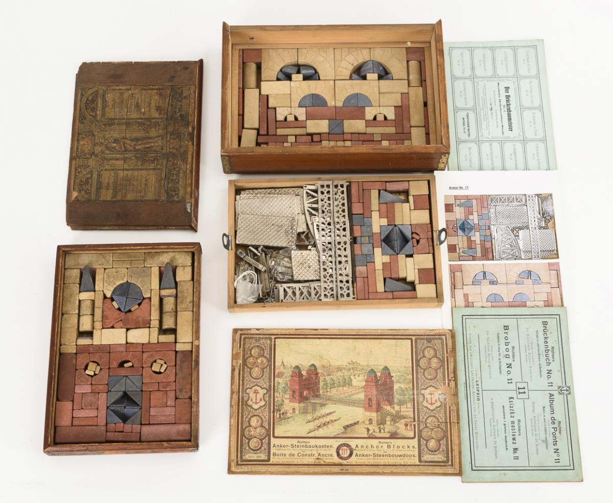 Convolute 15 anchor stone construction kits. F.A.D. Richter & Cie, Rudolstadt.