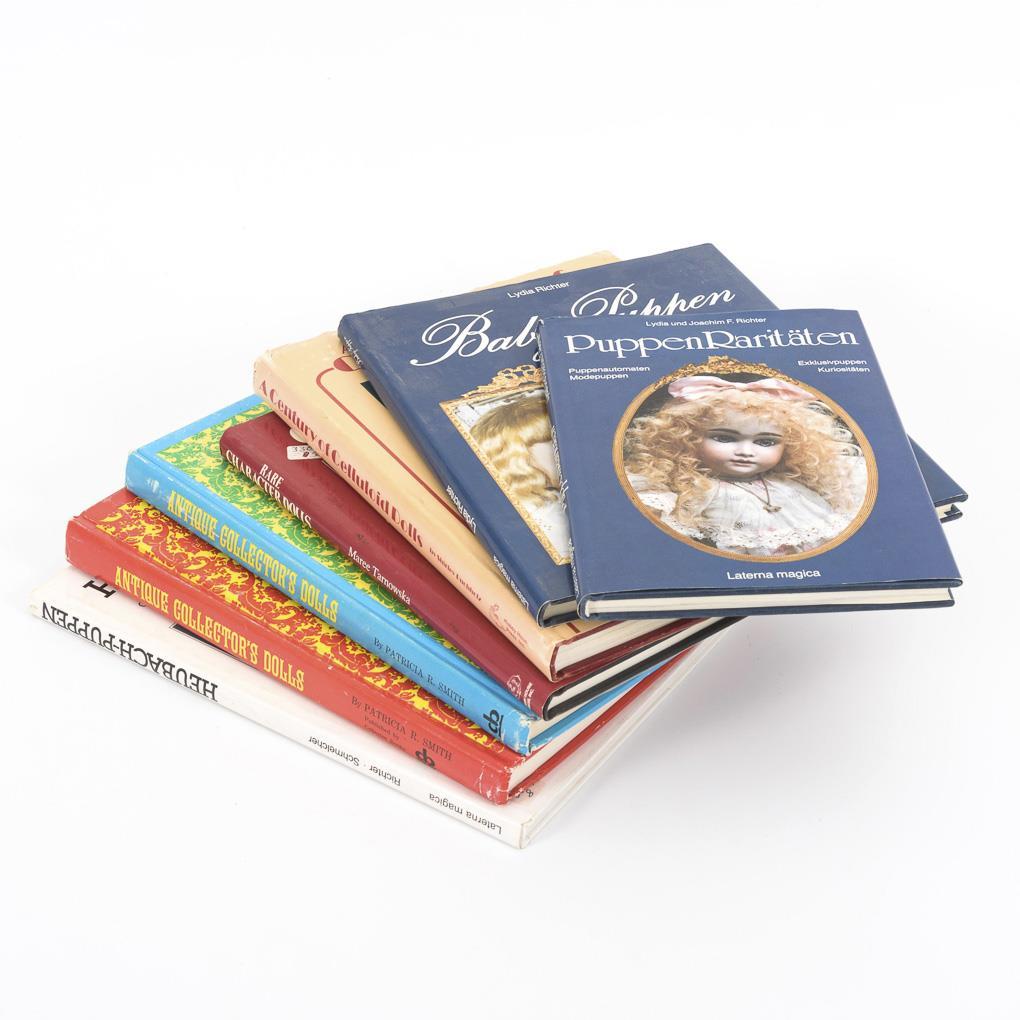 3x Lydia Richter: "Dolls Rarities", "Baby Dolls" and "Heubach Dolls". / 2x Patricia R. Smith: "Antique Collector's Dolls": First & Second Series. / Maree Tarnowska: "Rare Character Dolls". / Shirley Buchholz: "A Century of Celluloid Dolls". Minimal signs of age and use.