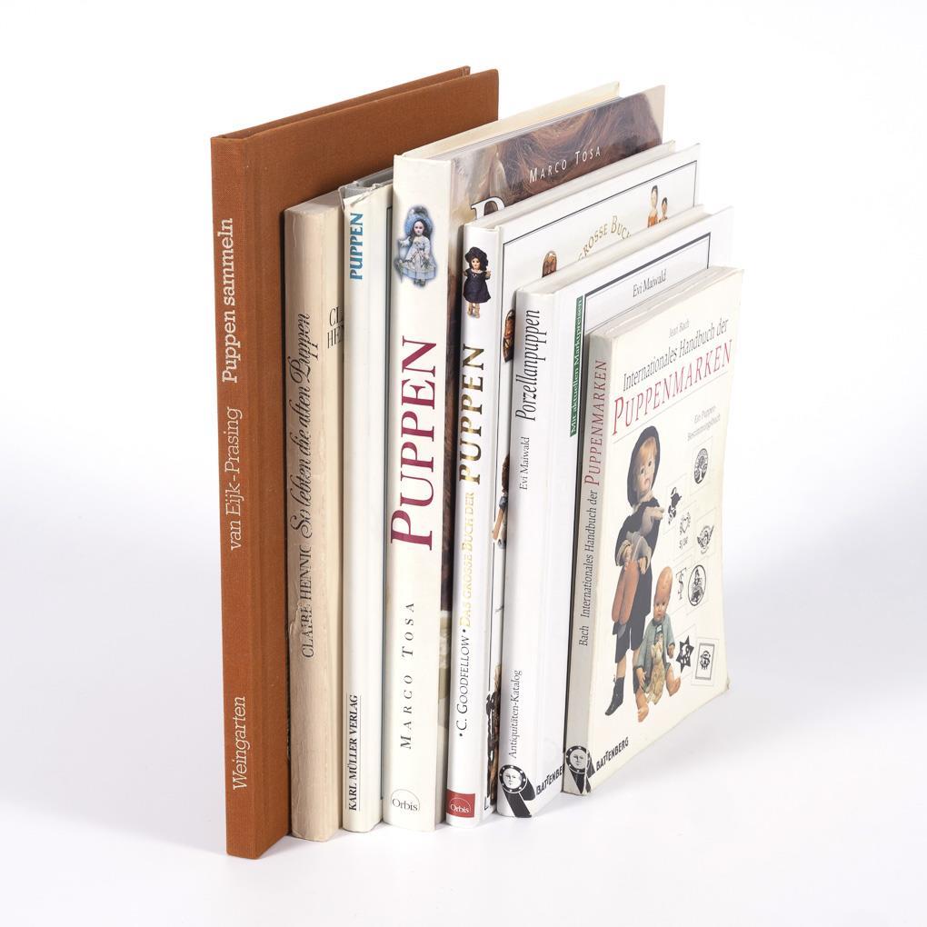 Jean Bach: "International Handbook of Doll Marks." / C. Goodfellow: "The big book of dolls". / Evi Maiwald: "Porcelain dolls". / Marco Tosa: "Dolls". / Kerry Taylor: "Dolls. Guide for lovers and collectors". / Claire Hennig: "This is how the old dolls lived". / Catharina van Eijk-Prasing: "Collecting dolls". Slight signs of age and wear.