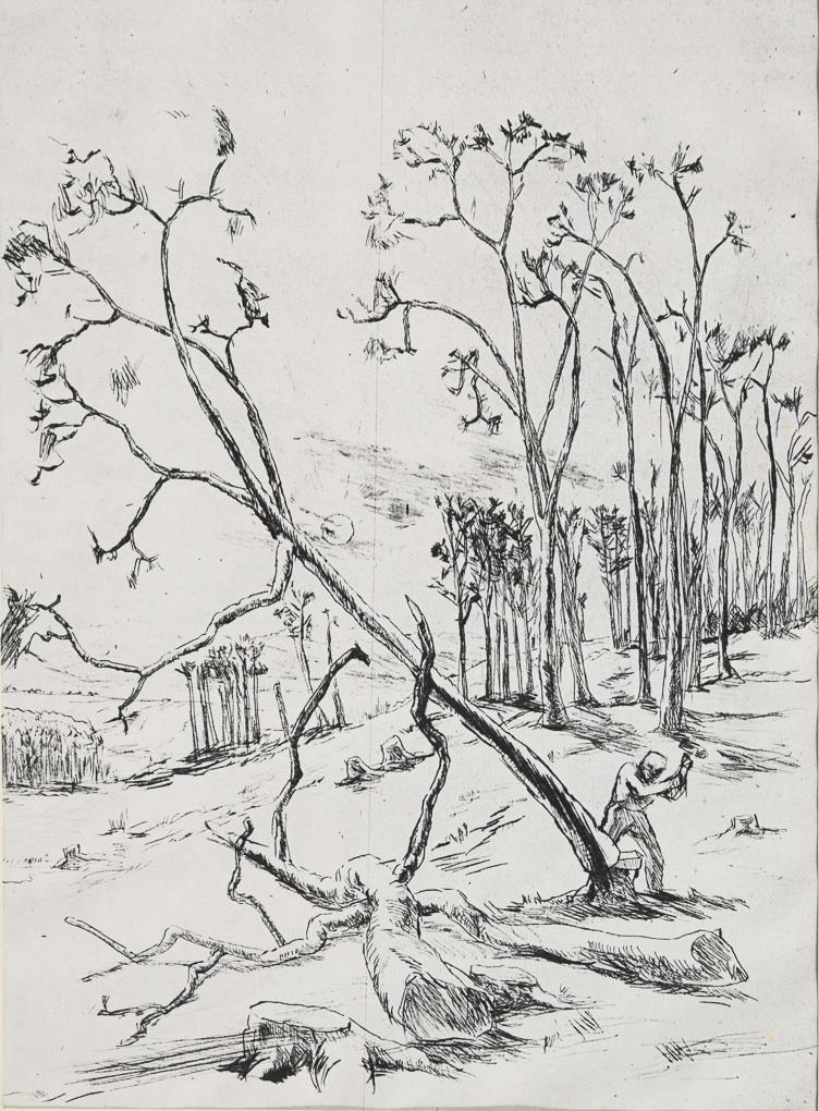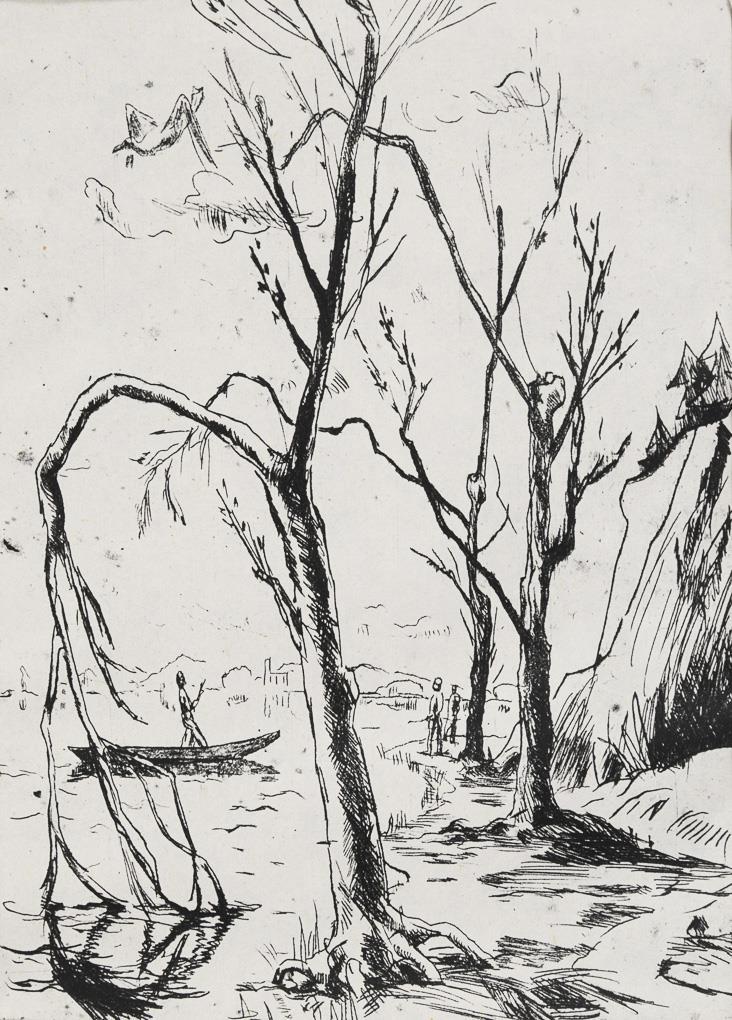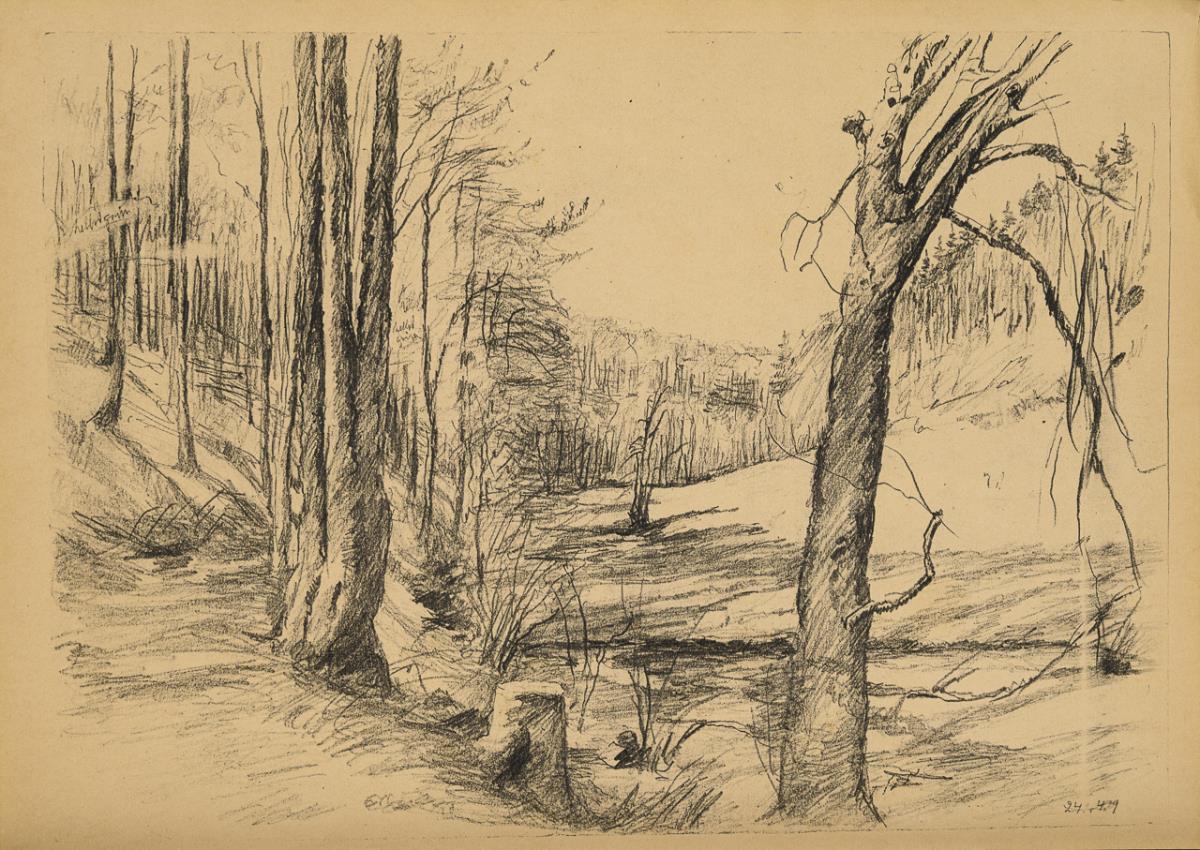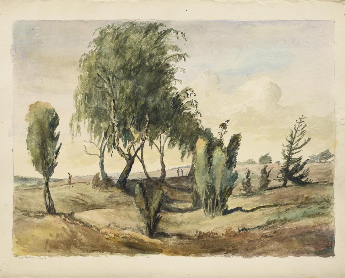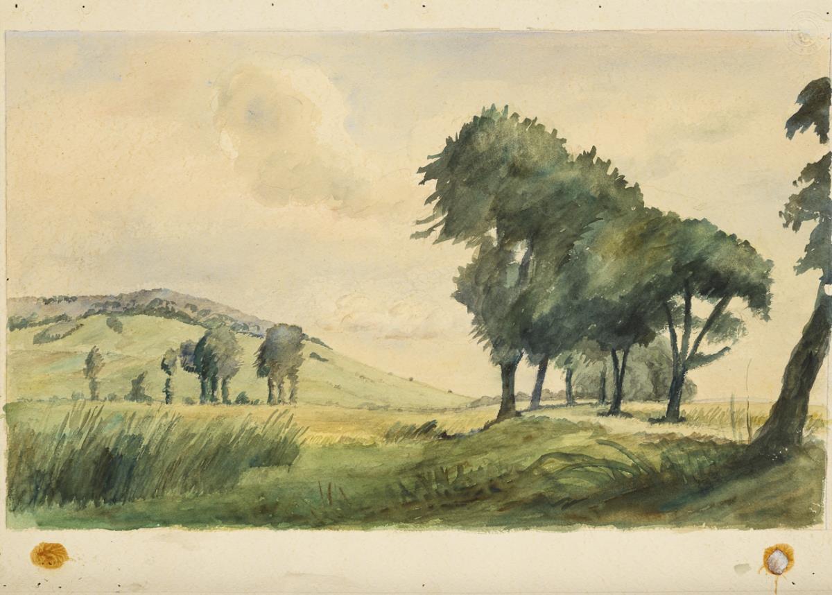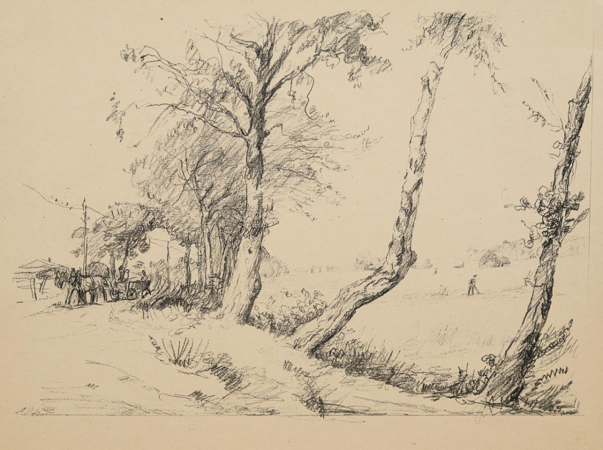 Various landscapes partly with staffage under cloudy sky. In addition, bundle of prints to various works of the painter. Small pinholes and small creases and tears at the edges and corners outside the image field.