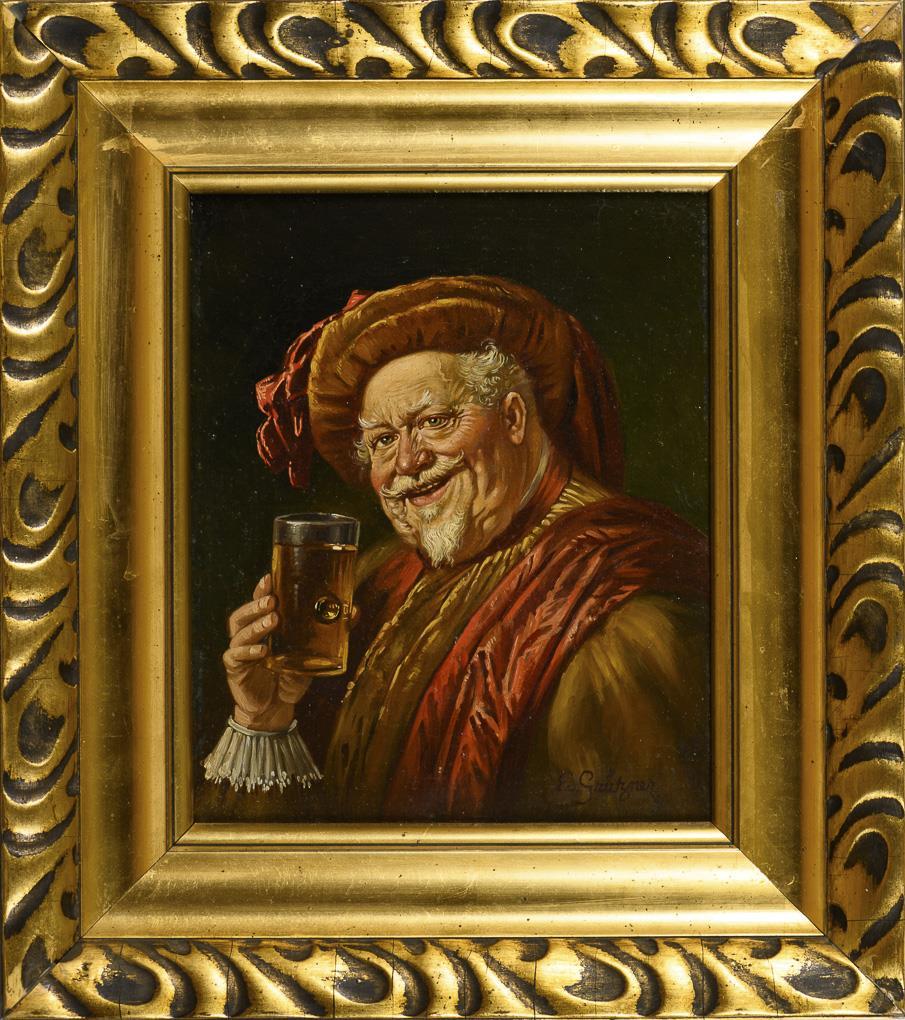 Portrait of a man drinking wine in historical costume. Slight signs of age.