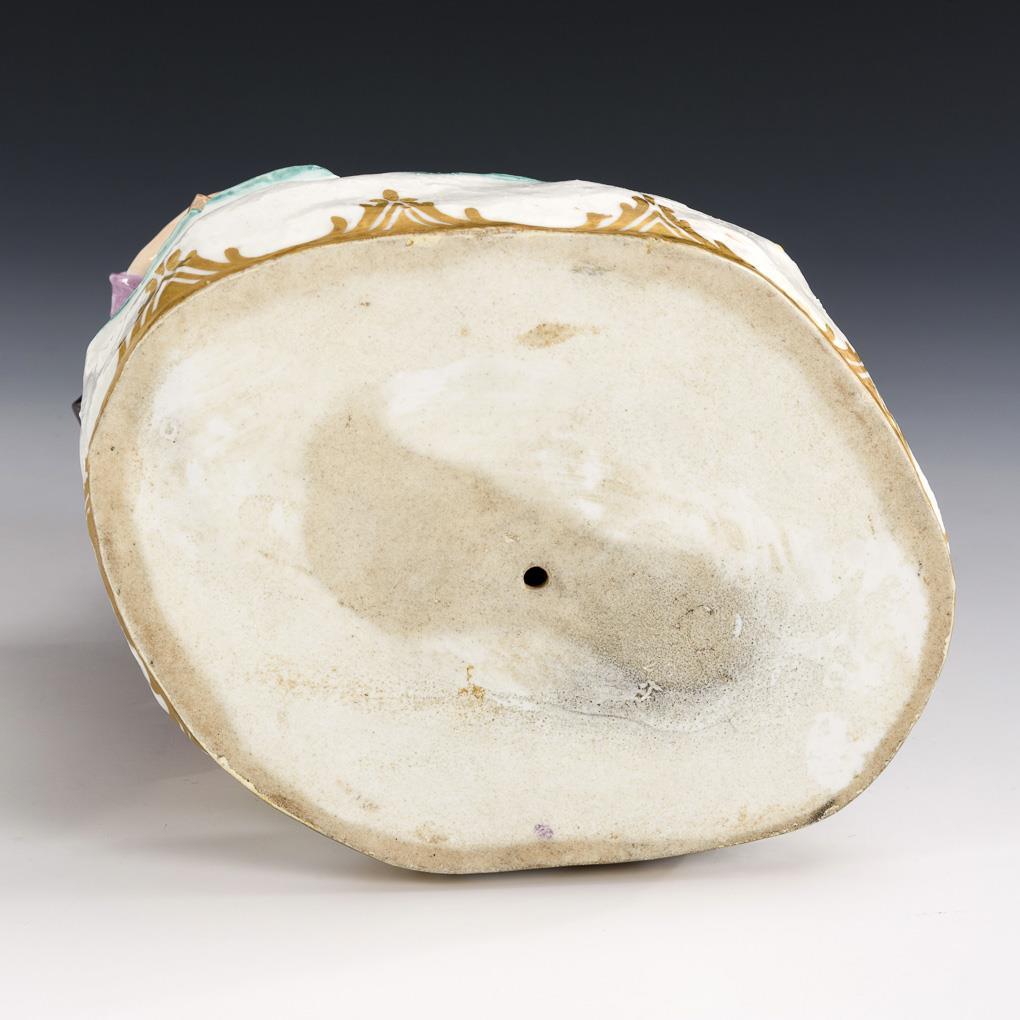 Polychrome painted, gold decorated. H 19 cm.