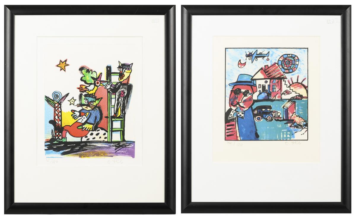 2 color lithographs. Each with pencil signature.