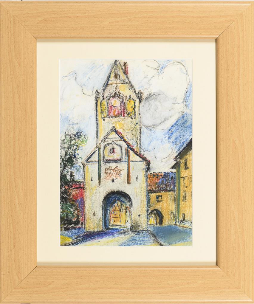 Pastel. Unsigned, verso photo of the stamp "Reisberger, Papier- und Schreibwaren Bad Wörishofen" from the drawing pad. 1950s.