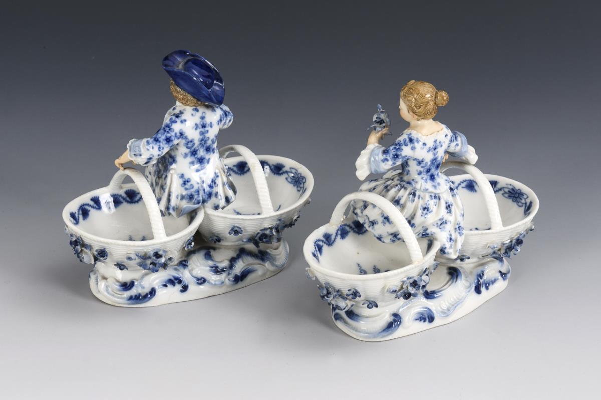 Pair onion pattern salting with gardener children. Meissen.
