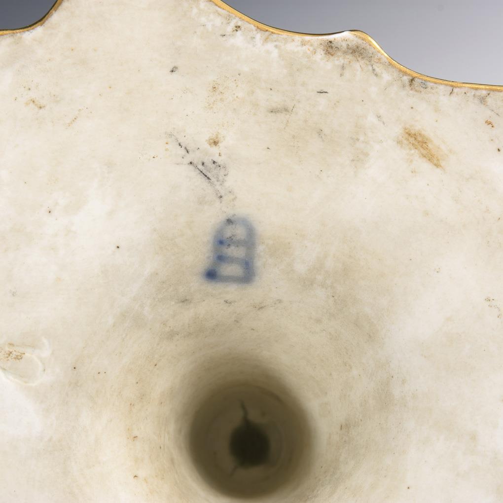 Table candlestick with laurel wreath on the short shaft, square-fitting foot. With floral painting and rich gold staffage. 1x with rim bump, minimal gold abrasion.