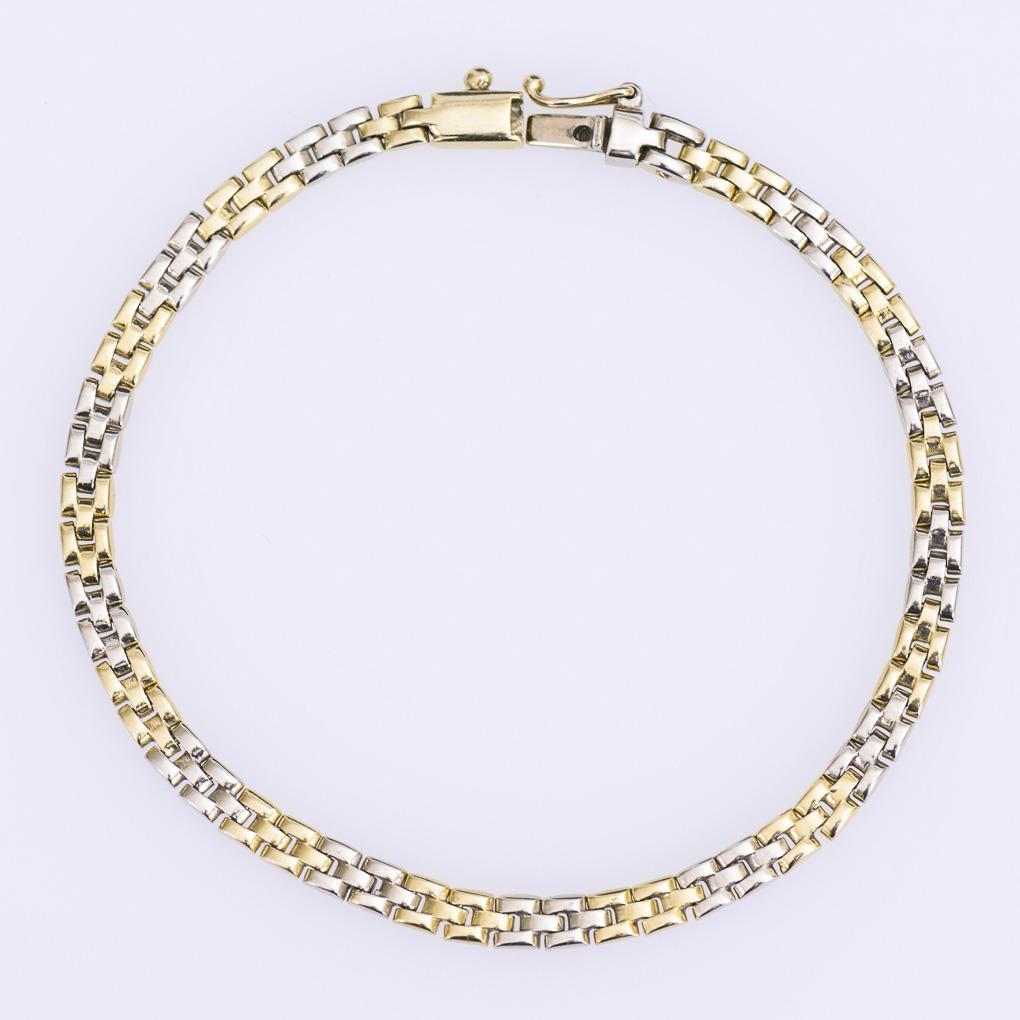 Yellow gold/white gold 585 stamped. 19.5 x 0.4 cm. 11,5 g.