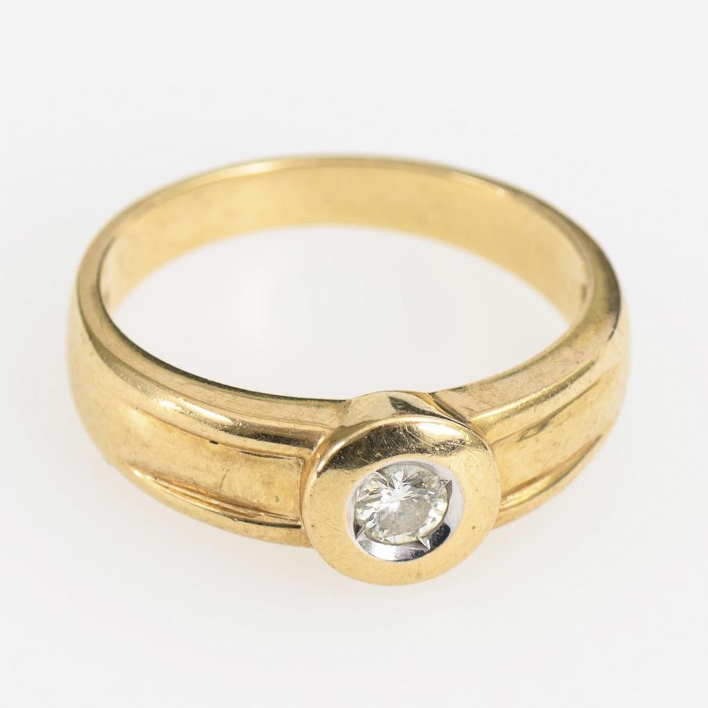 Ring with diamond solitaire.