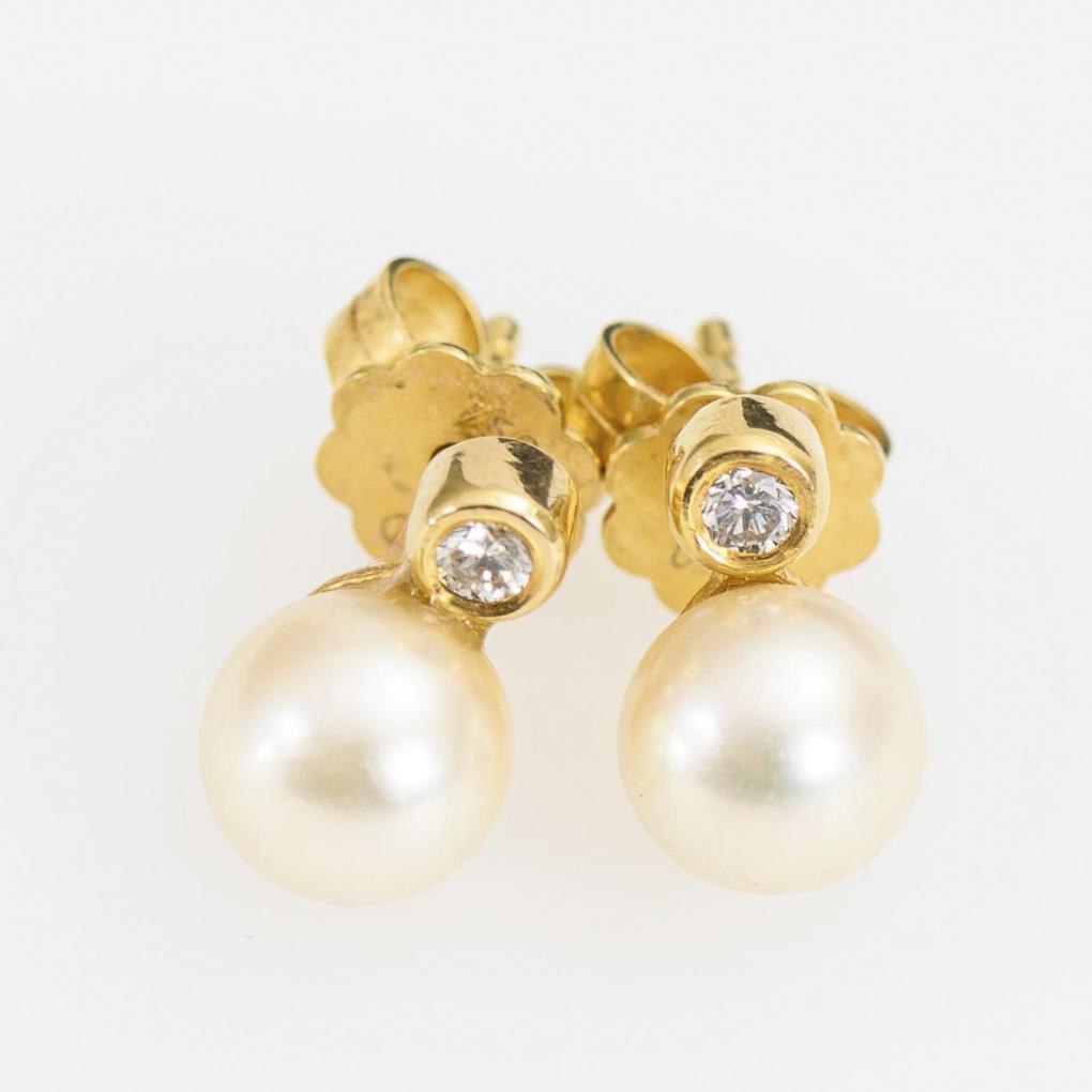Yellow gold 750 stamped. Ø 0.8 cm. Pearl Ø 0.5 cm. 2,2 g.