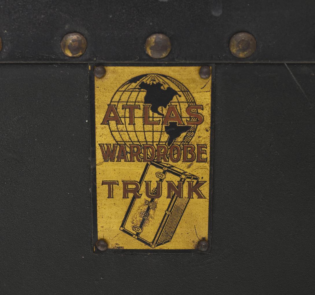Metal label "ATLAS WARDROBE TRUNK". Circa 1900.