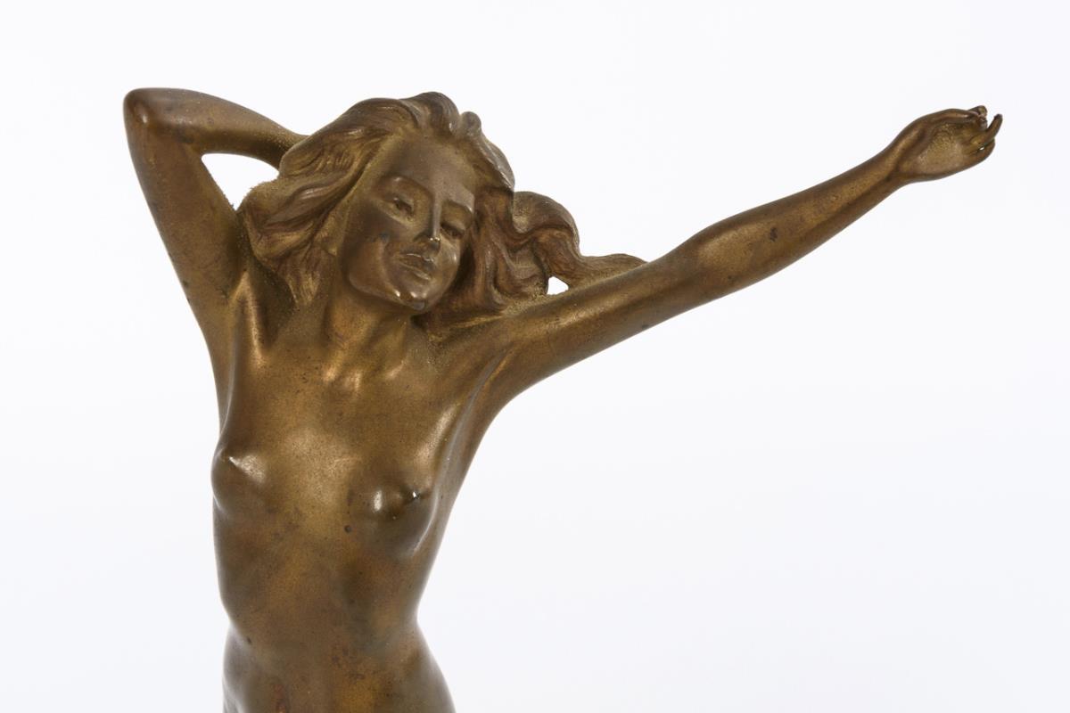 Exuberantly running nude of a young woman . Gold bronzing rubbed, minor signs of age / use.