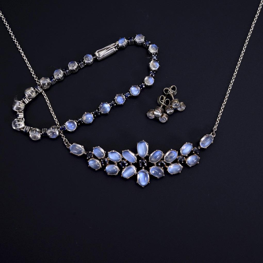 3-piece jewelry set with moonstones and sapphires.