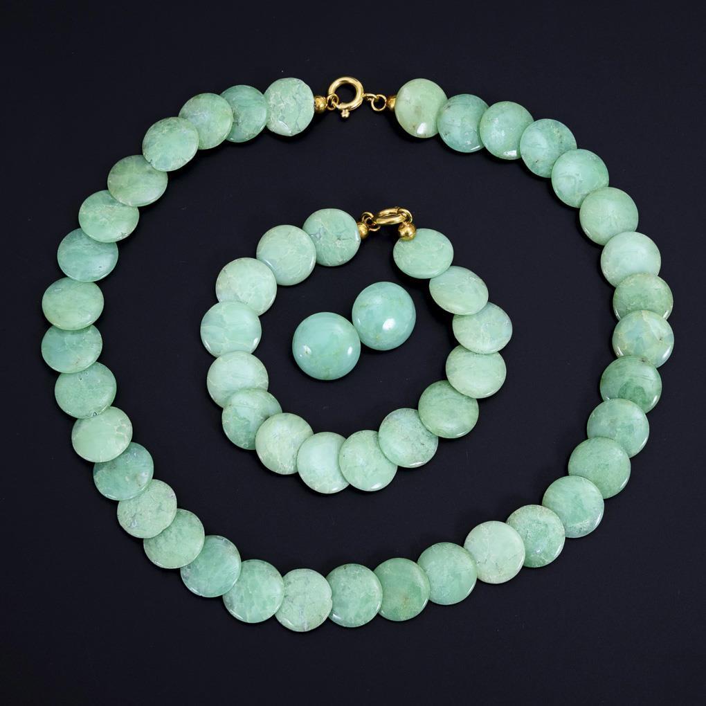 3-piece jewelry set with chrysoprase.