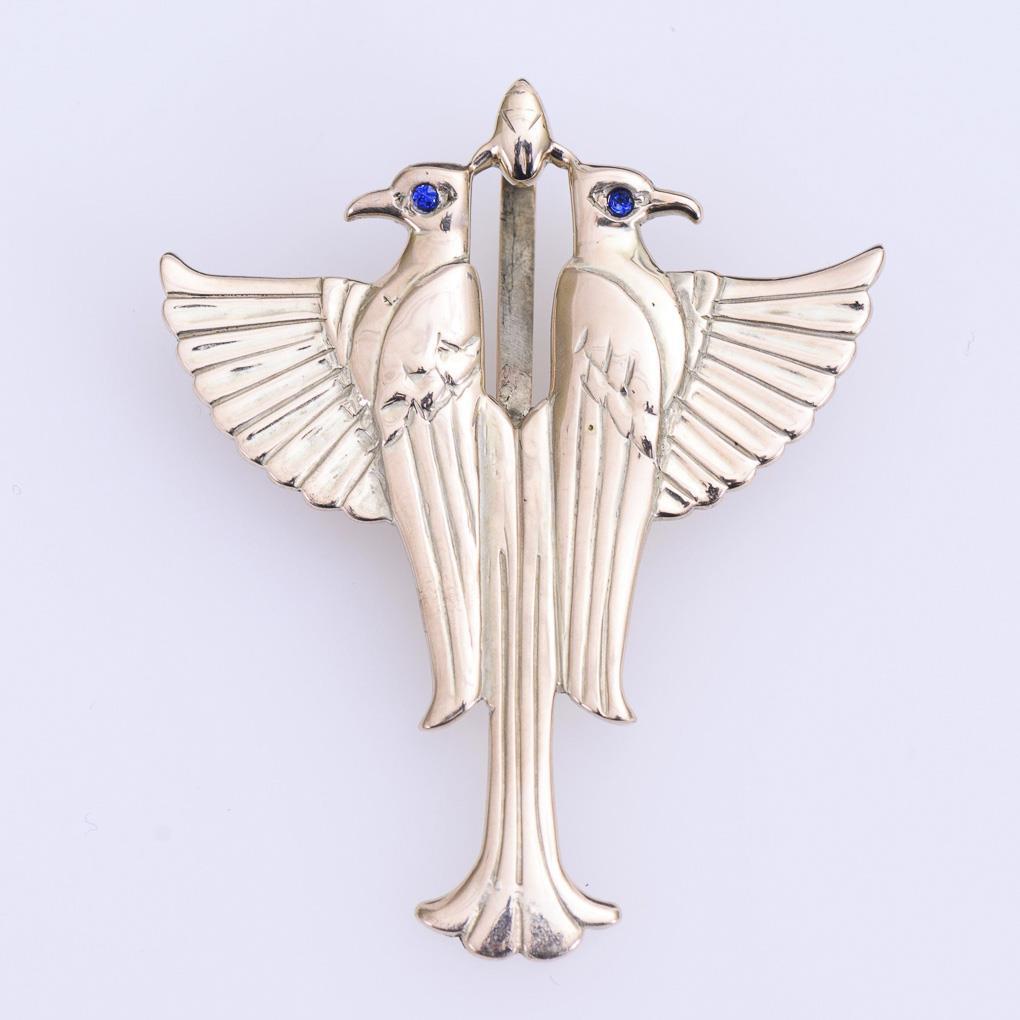 Mirrored bird relief with blue stone eyes. Rigid lug.