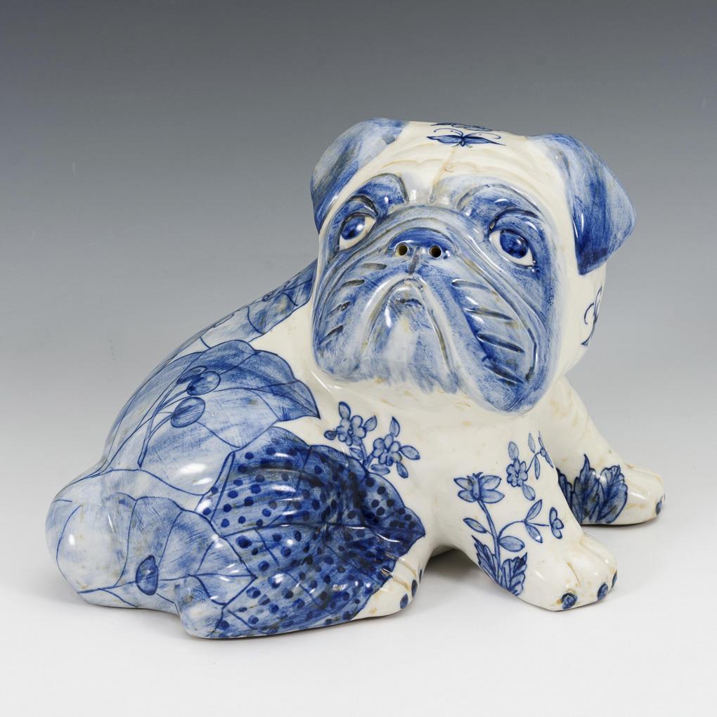 Porcelain with underglaze blue painting. Dog: 16 cm, jug: h 15 cm.