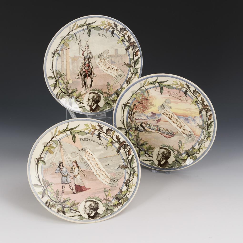 3 wall plates with opera motifs by Richard Wagner. Sarreguemines.