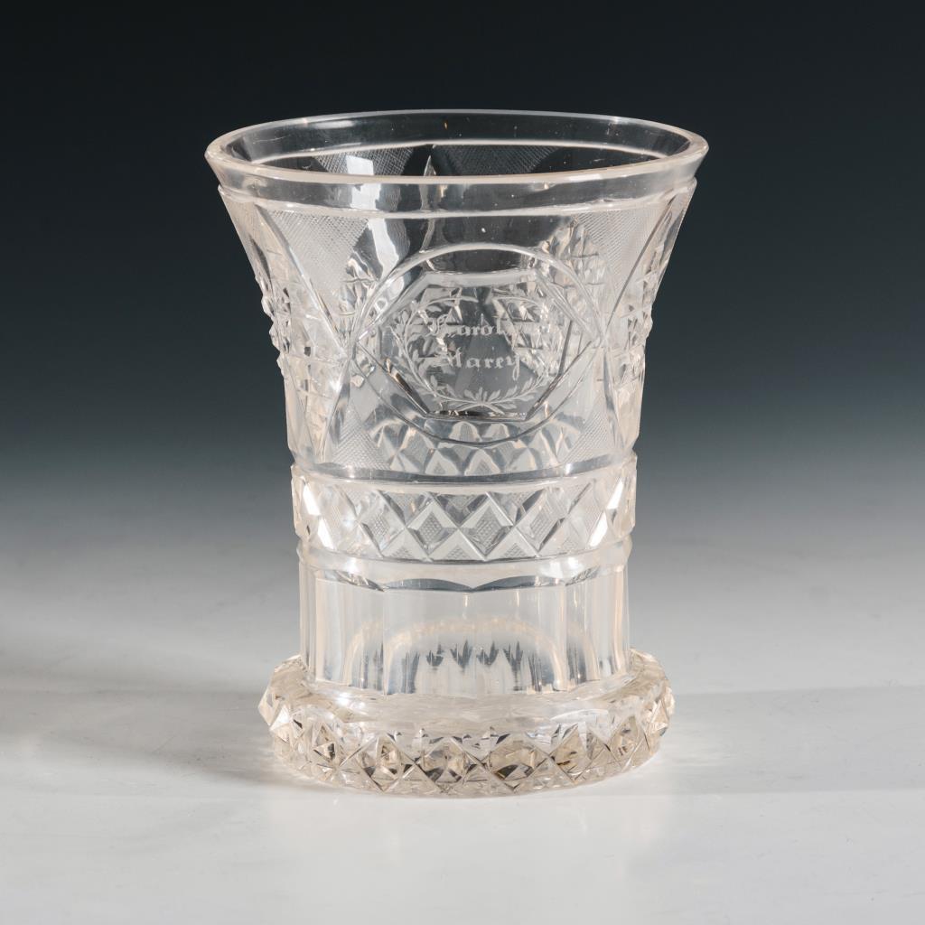 Kraterbecher. Schauseitig eine Kartusche mit dem Namen "Karoline Starey".