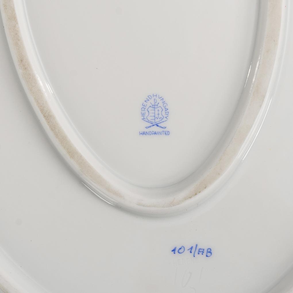 Blue Indian floral painting over preprint, gold staffage. L 37,5 and 41,5 cm.