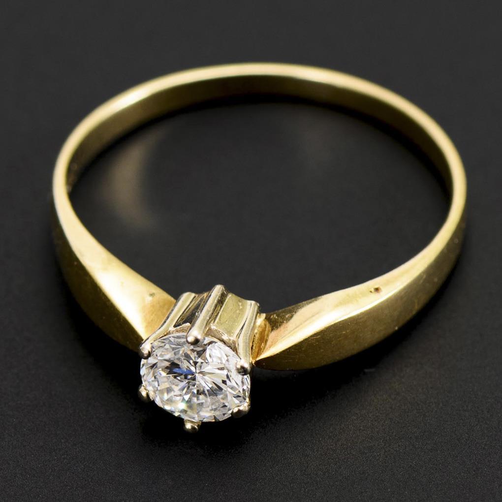 Yellow gold / white gold 585 stamped. Ring size 59. diamond approx. 0.55 ct/G-H/PI. 2,6 g.