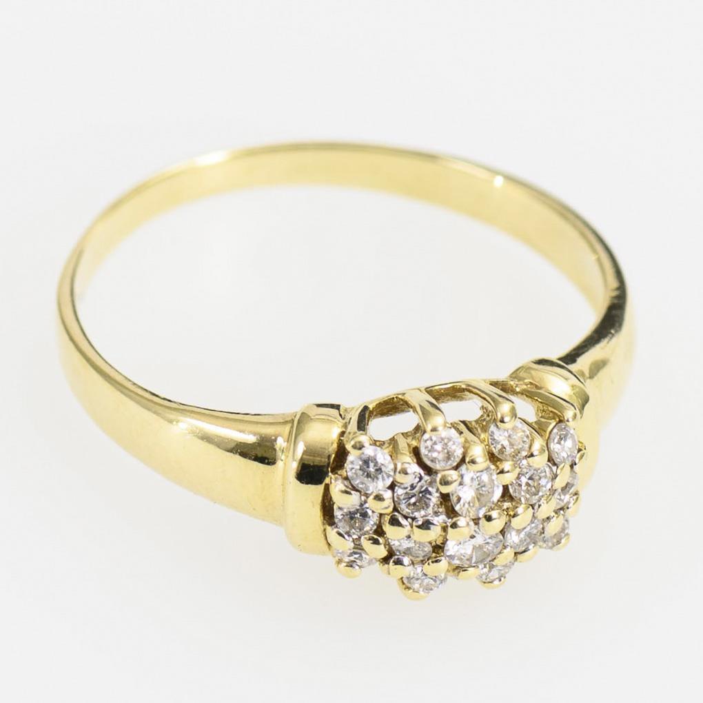 Tested yellow gold 585. Hallmark fused. Ring size 56. diamonds together approx. 0.22 ct. 2.5 g.