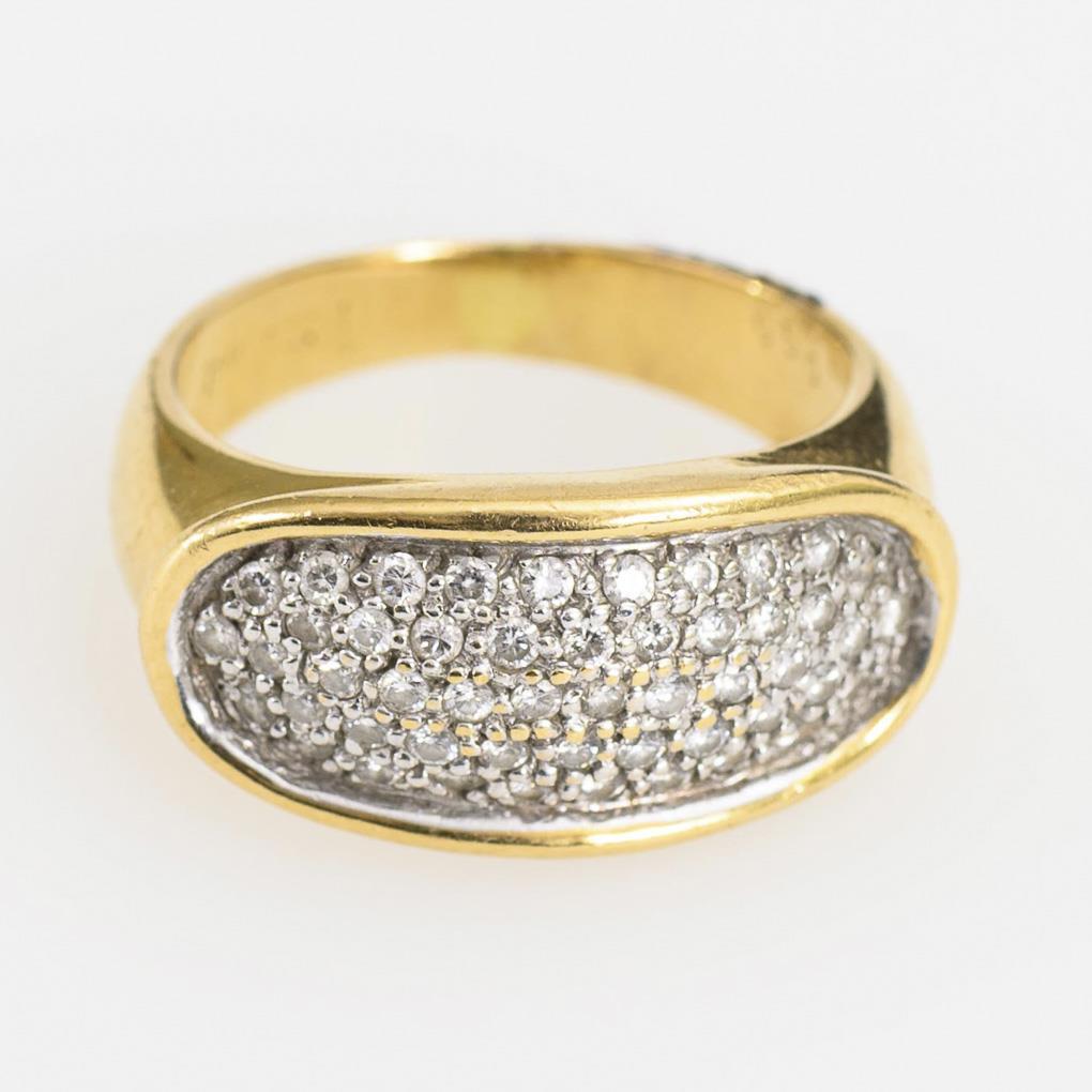 Yellow gold 750 stamped. Ring size 52. diamonds together 0.50 ct. 7.9 g.