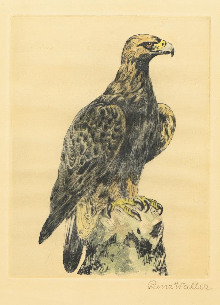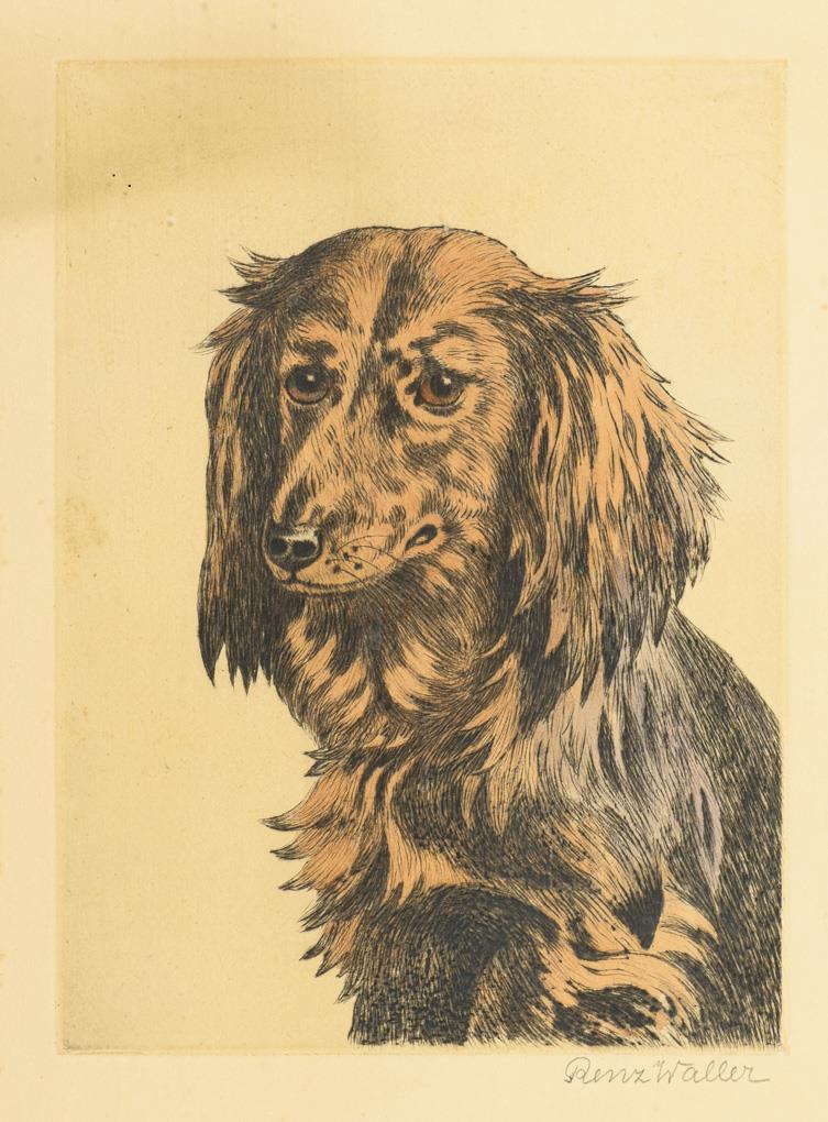 Dachshund: plate: 27.5 x 20.5 cm, framed & behind glass: 48 x 35 cm | Eagle: plate: 25.5 x 19.5 cm, framed & behind glass: 43 x 33 cm. Each somewhat creased and foxed.