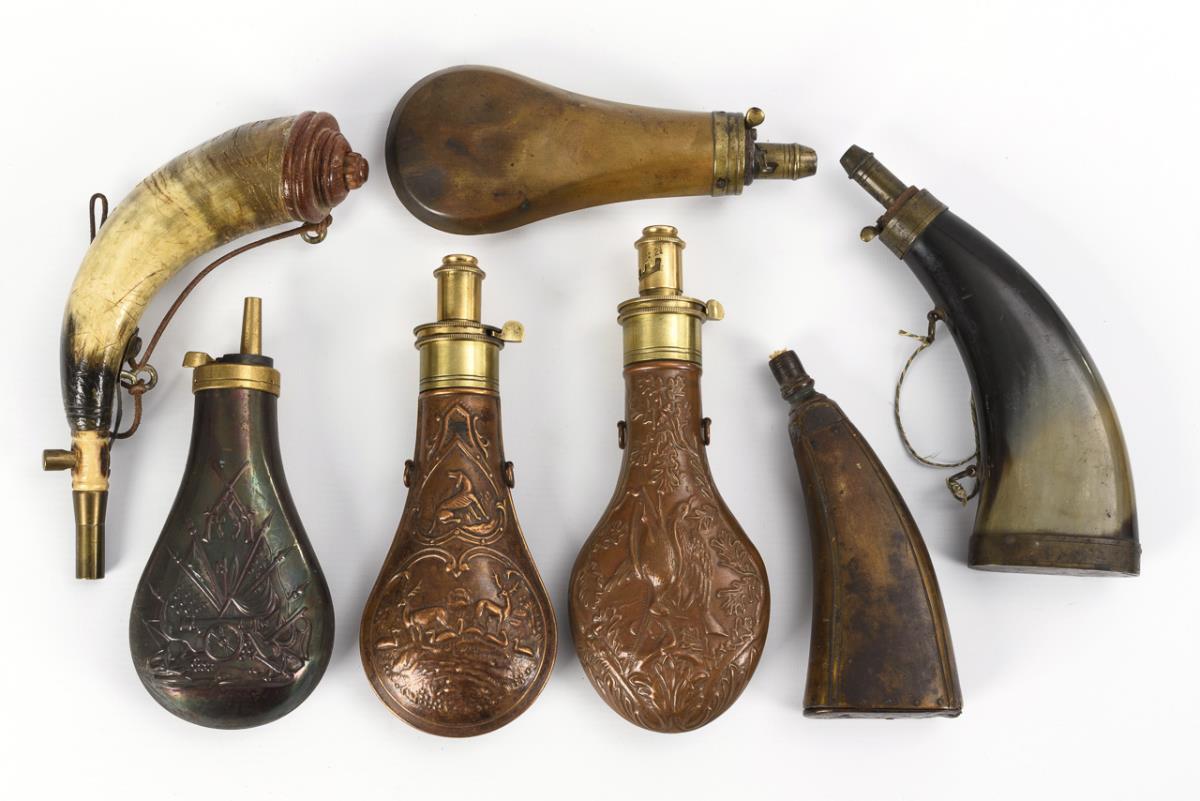 7 powder flasks.