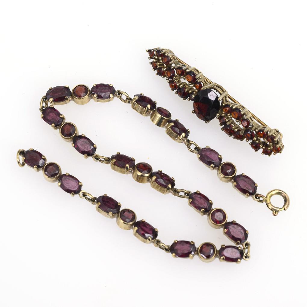 Bracelet and brooch set with garnets. Ring spring clasp and ball hook.