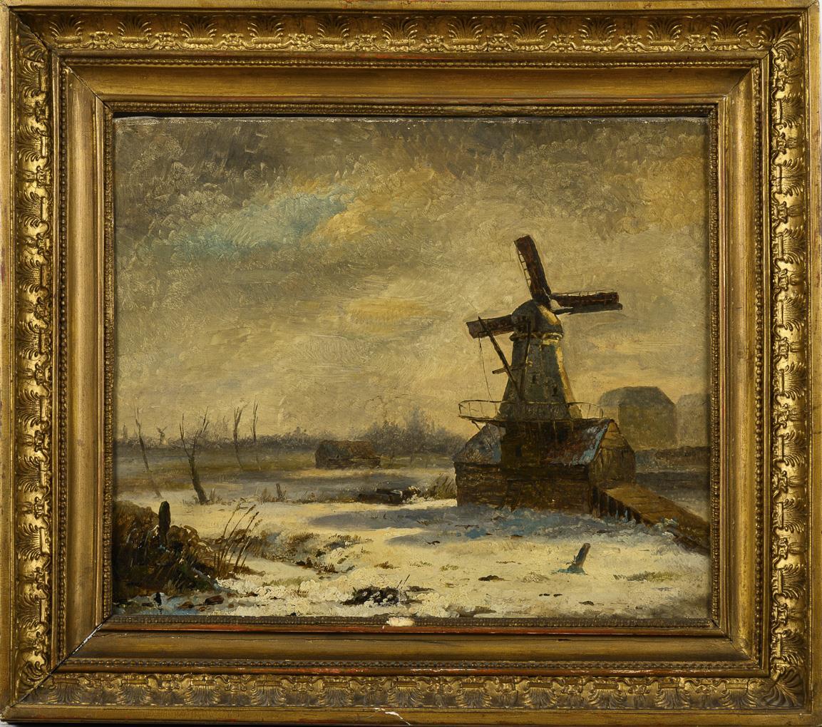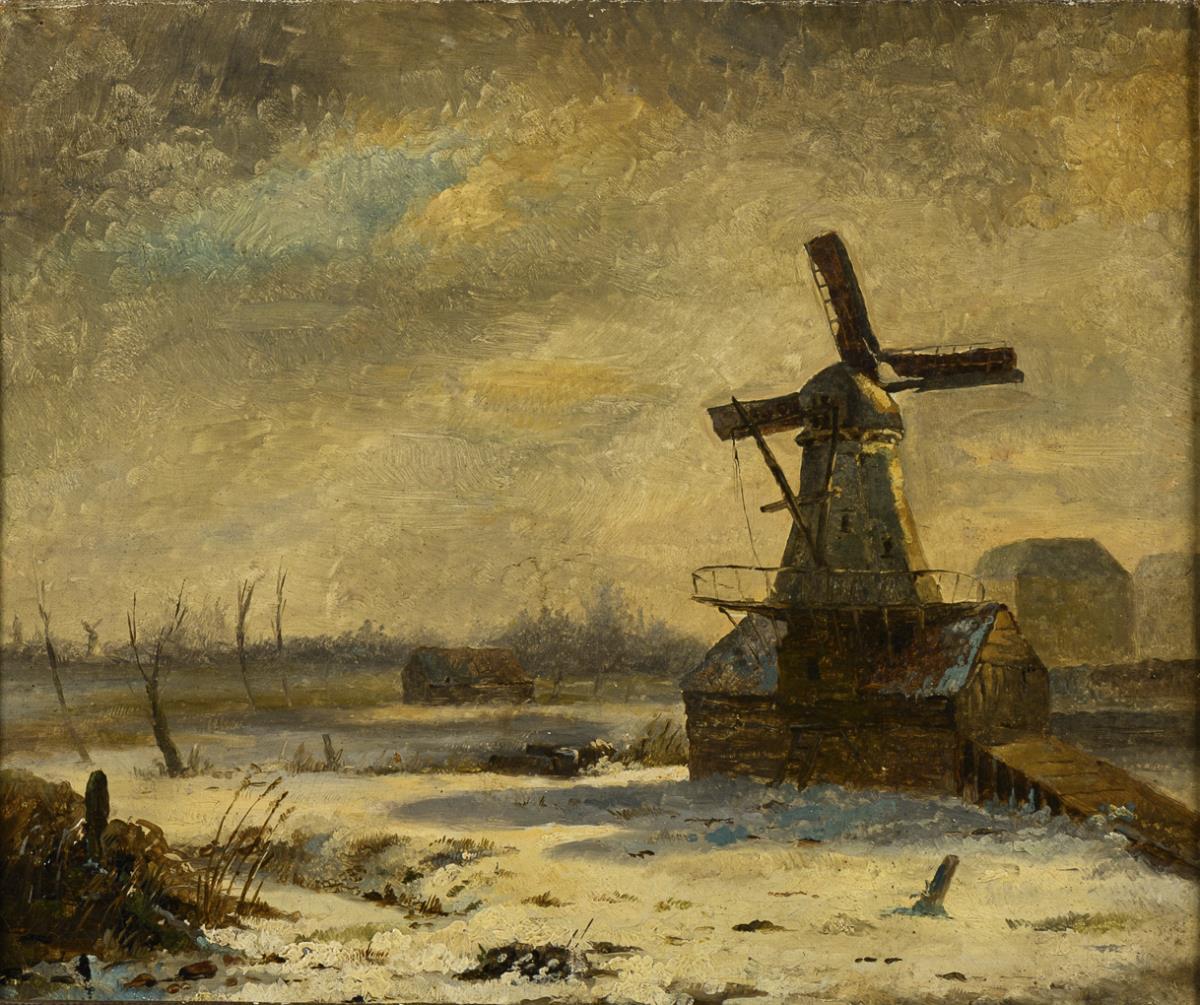 French painter: Winter landscape with mill