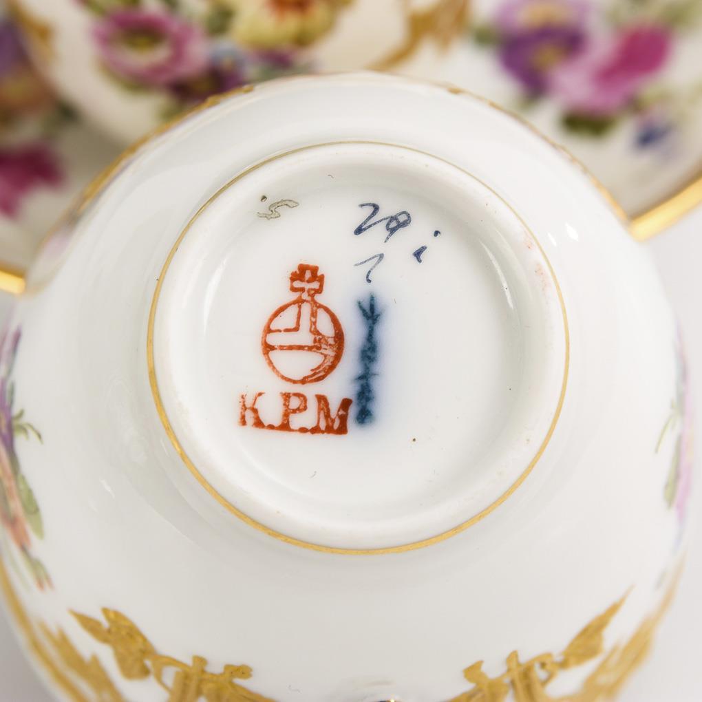 2 demitasse cups with floral painting. KPM Berlin.