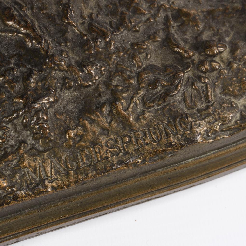 Iron casting bronze patinated. "Mägdesprung" inscribed. 20 x 36 x 13.5 cm.