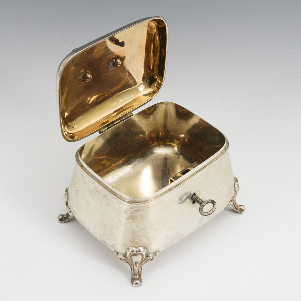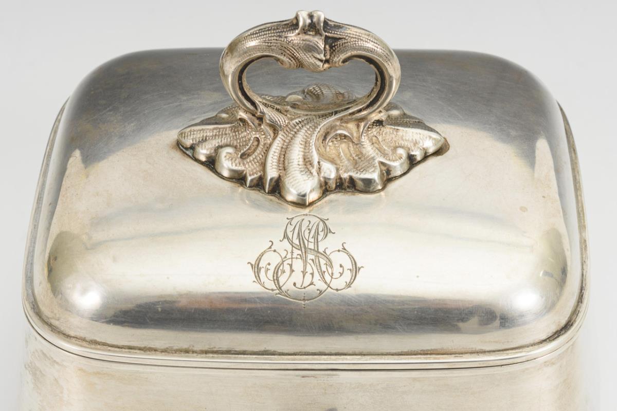 Silver, gilded interior. 14 x 14 x 11 cm. 351 g.