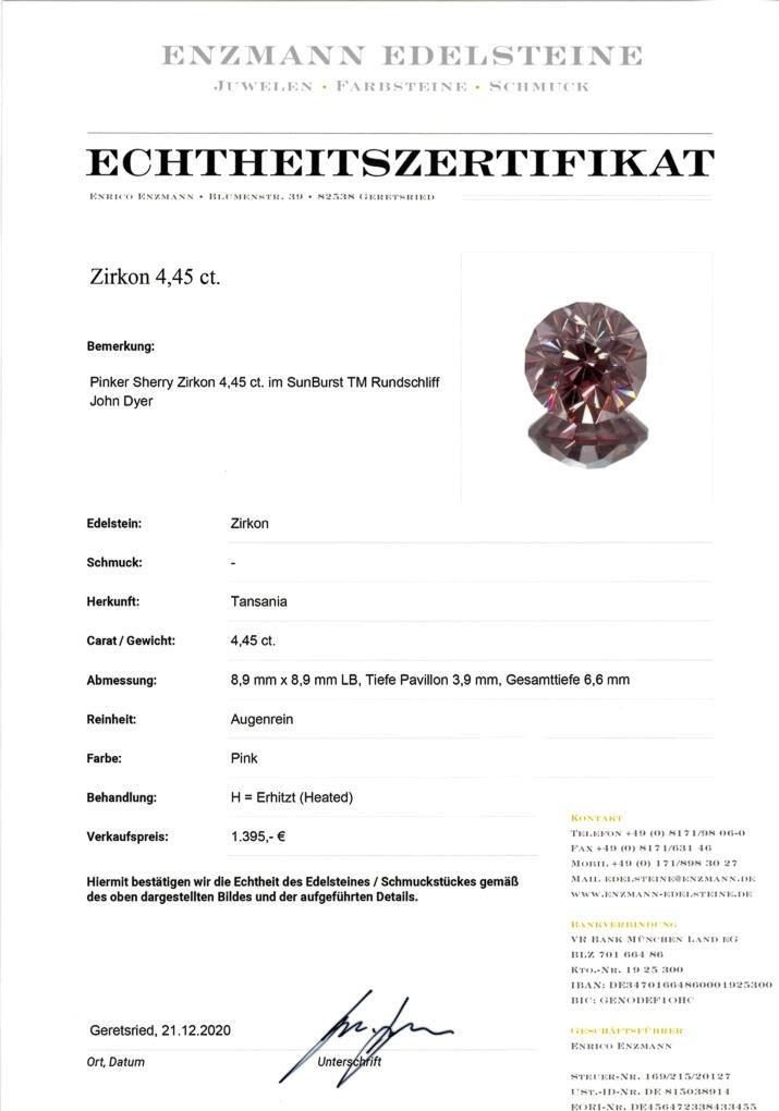 4.45 ct/pink sherry (heated)/eye clean/Tanzania. 0.89 g.