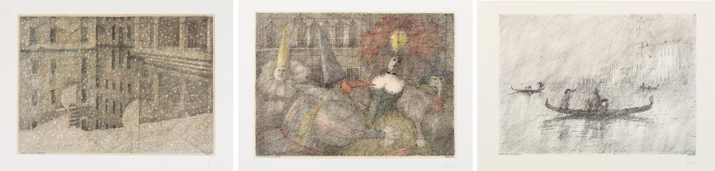 3 Werke: "Die neugierige Nase", "Venedig, Winter, Schneefall" und "Carnevale Veneziano"