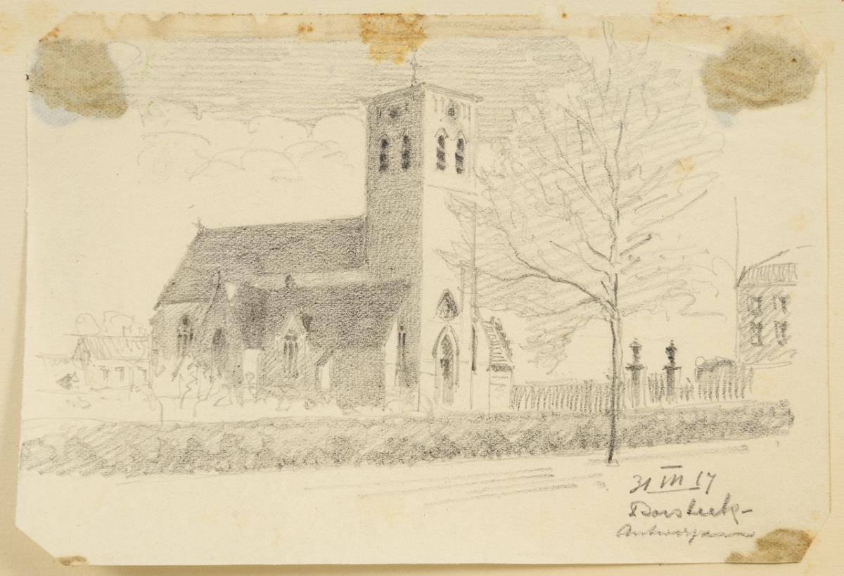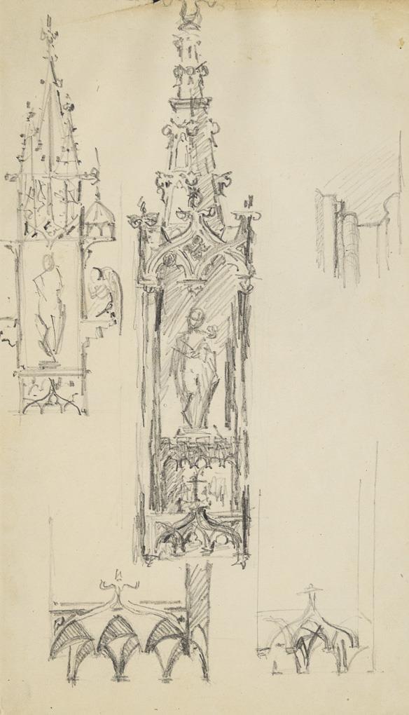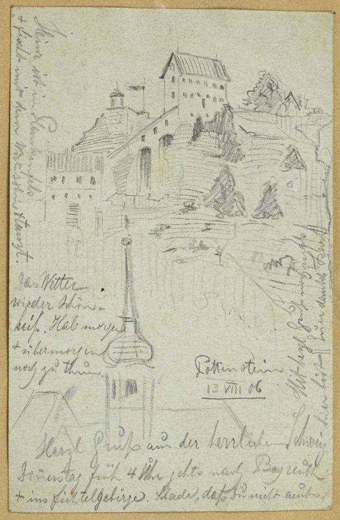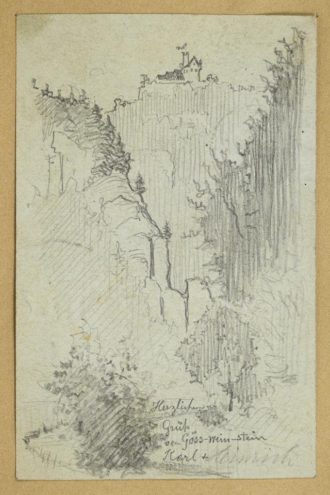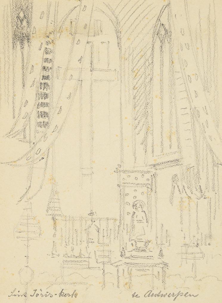 20 small-format drawings with landscapes of Antwerp and surroundings, Brussels, Streitberg, Gößweinstein and Pottenstein, partly with greetings from "Karl and Heinrich" as well as church interiors, city views and various studies. Partly foxing and traces of grip.