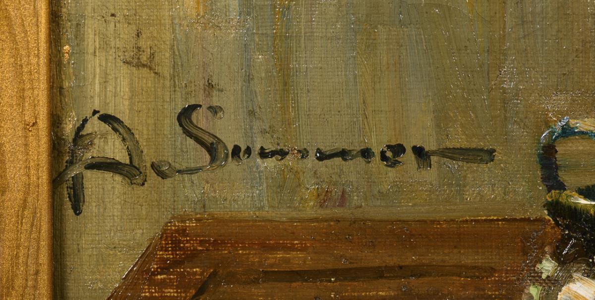 Oil/canvas/cardboard. Signed lower left.