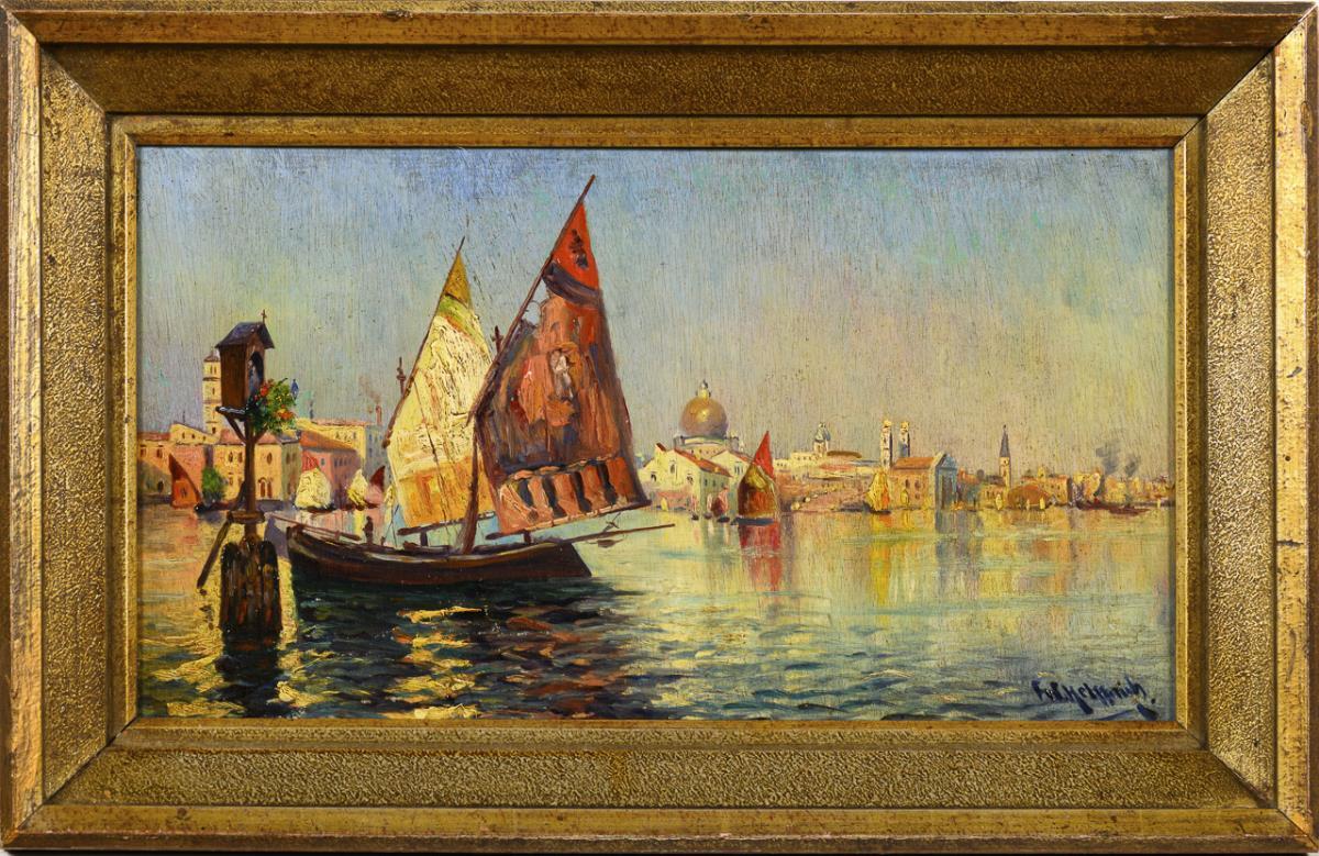 Oil / plywood. Signed lower right, titled on verso. Early 20th c.