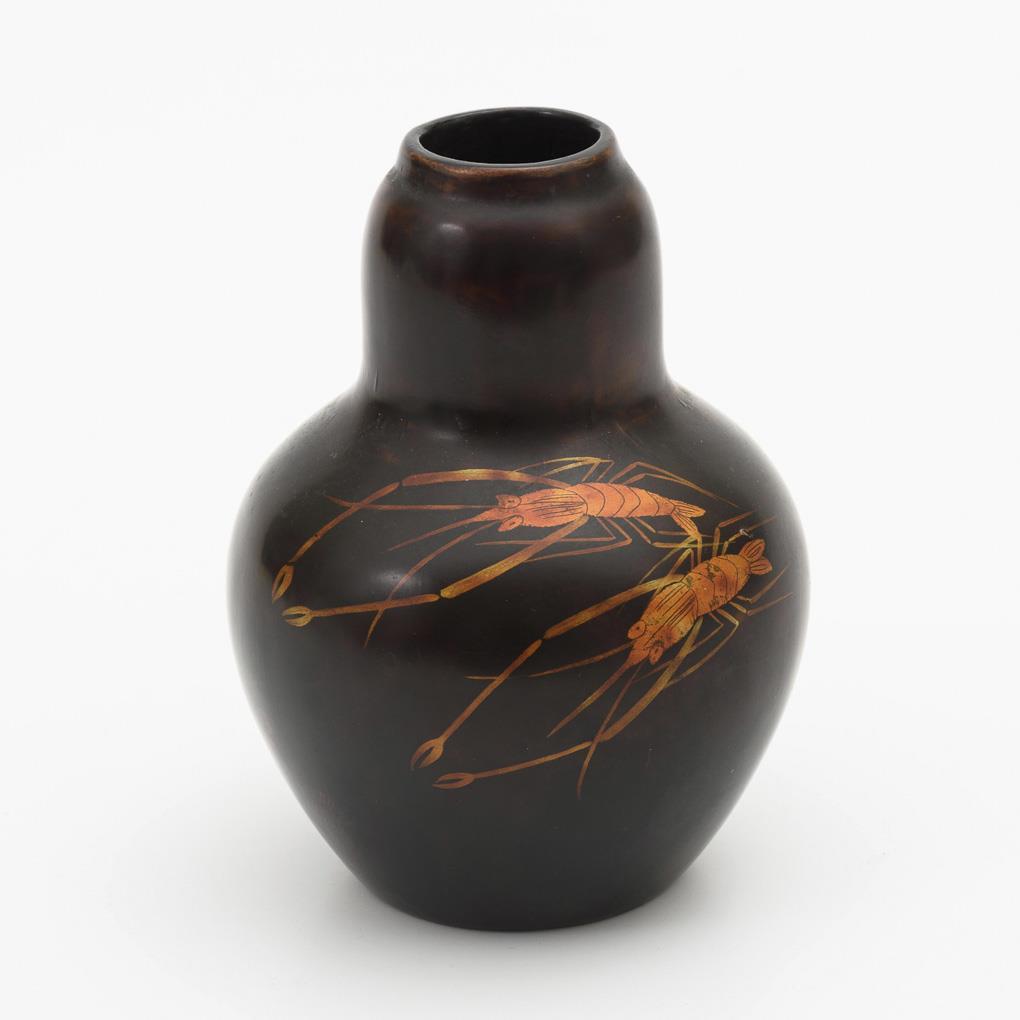 Lacquer vase with shrimp.