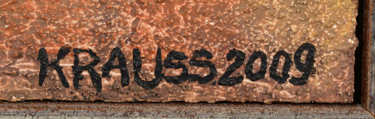 Mixed media with figurative metal applications. Signed lower right, inscribed/titled on verso. Dated: 2009.