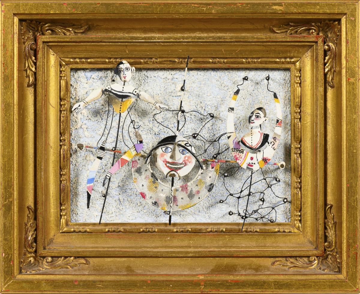 Mixed media with figurative metal applications. Unsigned, verso inscribed/titled/dated: 2005 and estate label.