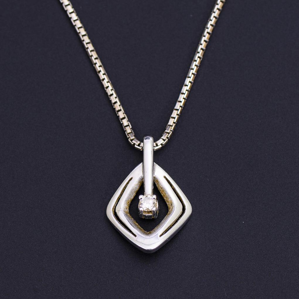 Frame pendant with small diamond, on Venetian chain with ring spring clasp.