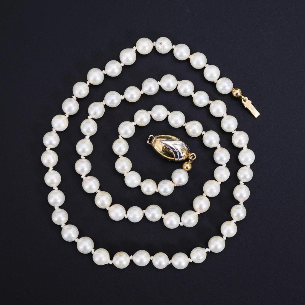 Yellow gold clasp 375 stamped. L 49 cm. Beads Ø 0.6 cm. 20,0 g.