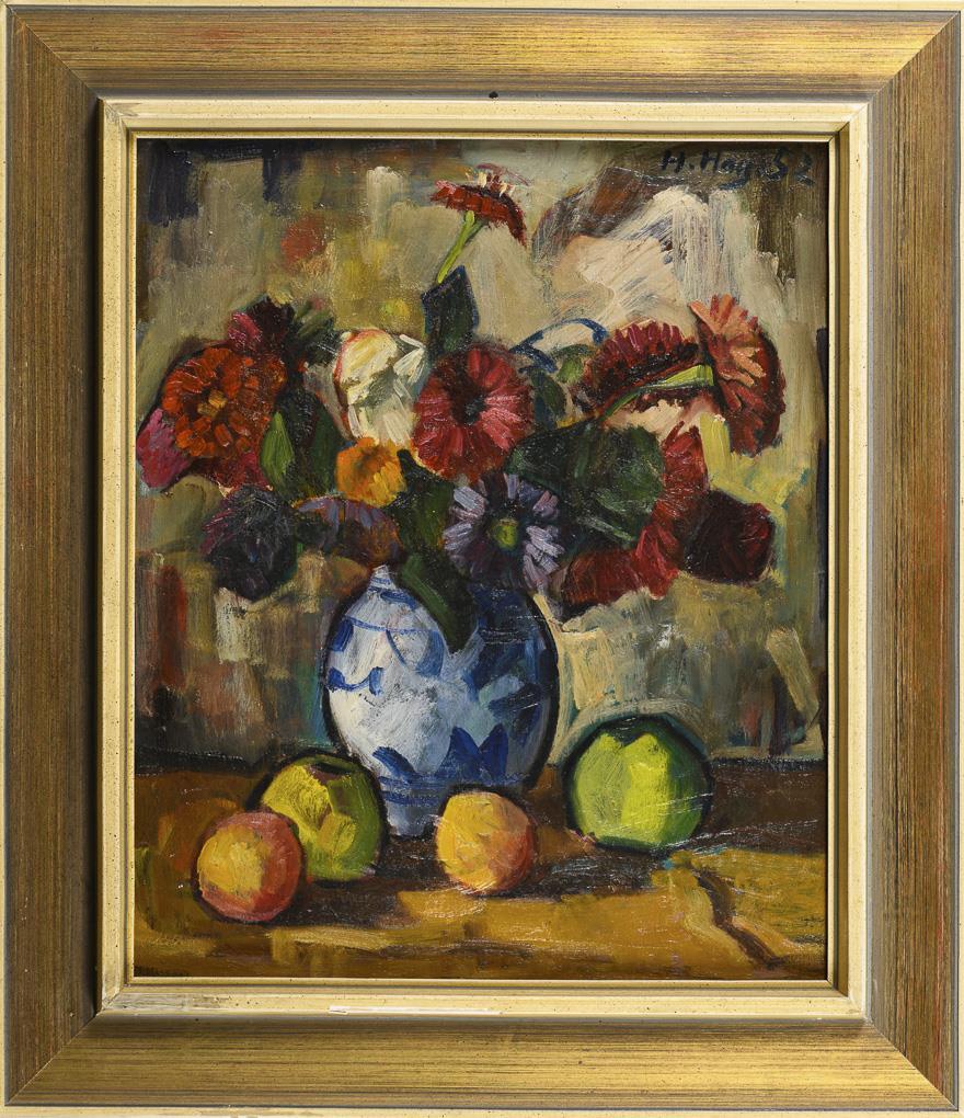 Modern Still Life with Flowers and Fruits