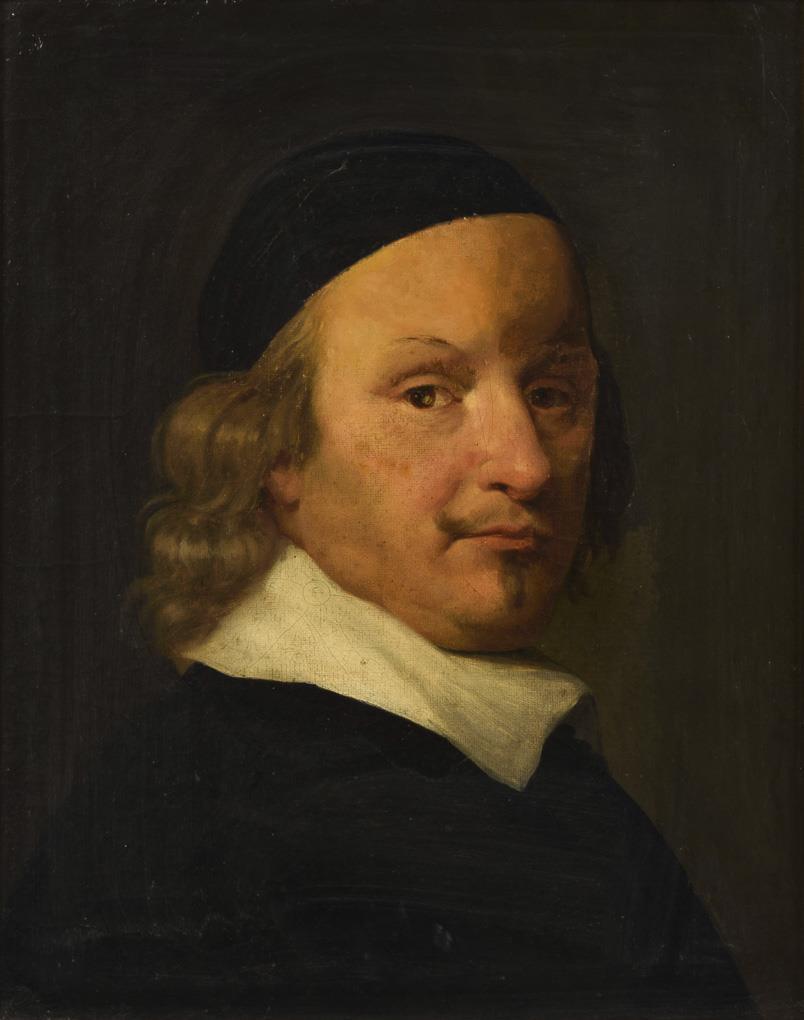 Quality painted man with cap and white collar looking over his shoulder to the viewer. According to tradition, probably the actor Wilhelm August Iffland in 1780. Restored, doubled, crackled.
