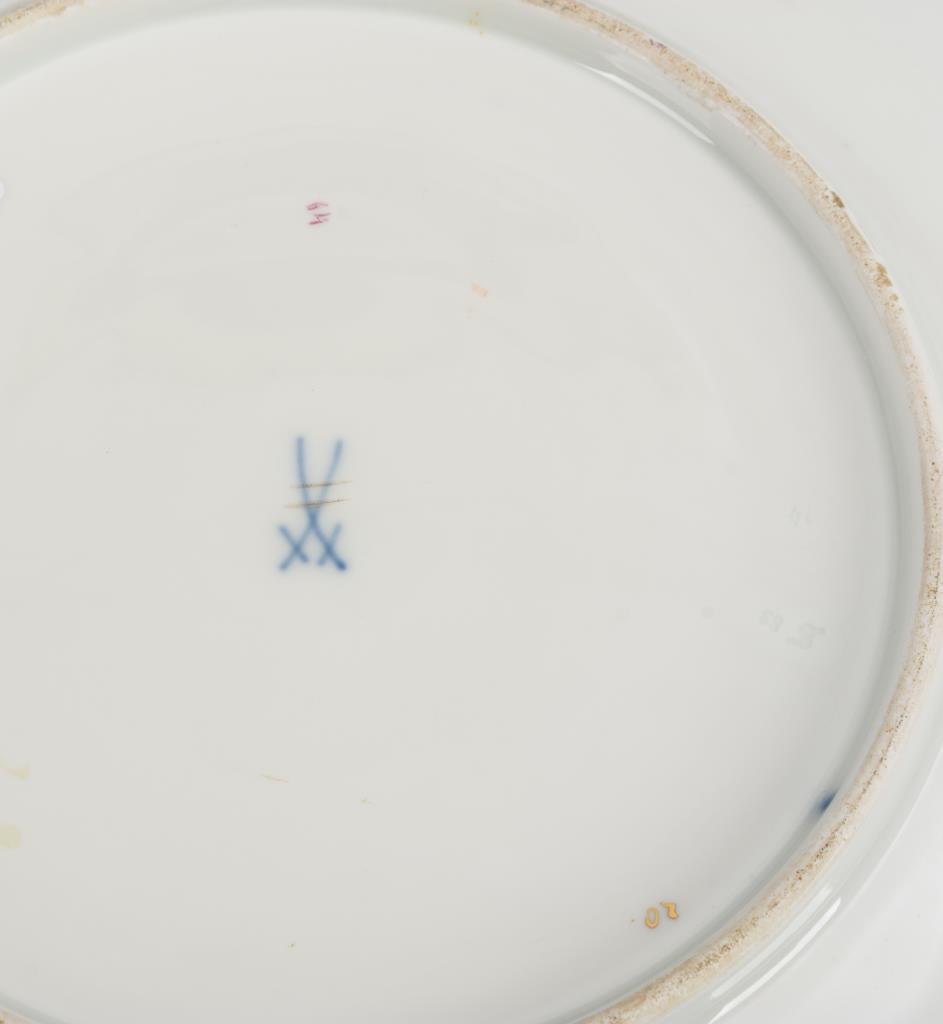 Polychrome Blumenmalerei, Goldstaffage.Ø 29 cm.