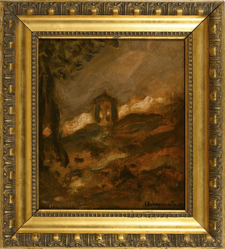 Oil/cardboard. Signed lower left, old inscribed lower right.