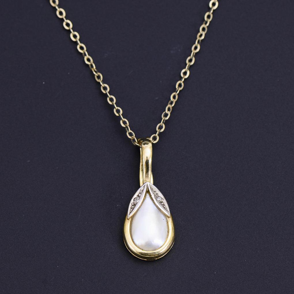 Yellow gold pendant 333 stamped. Pendant 2.5 x 1 cm. Metal chain L 48.5 cm. Pendant 2.2 g. Chain 1,6 g.