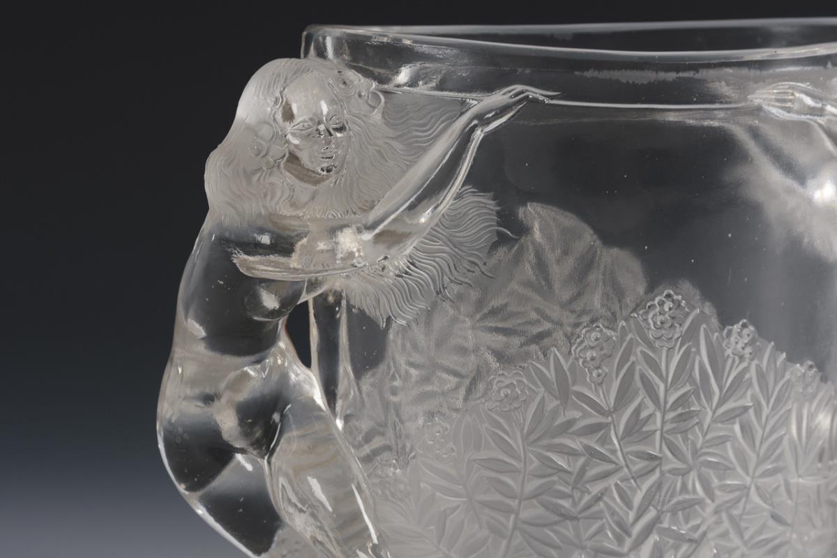 Colorless, molded and partially frosted glass. H 19.5 cm.