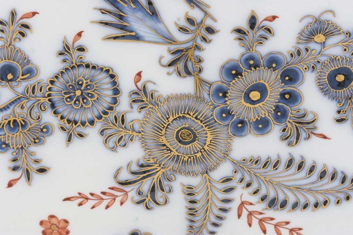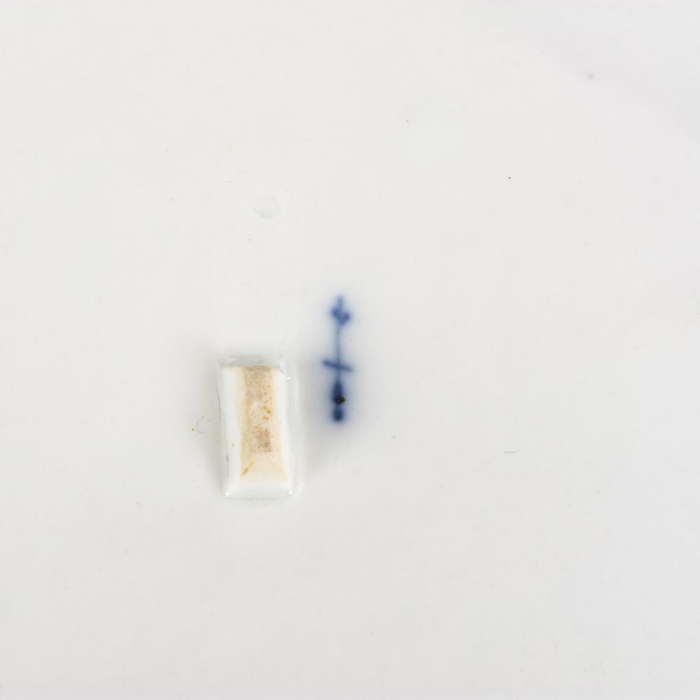 Painted underglaze blue, heightened with red and gold. Ø 38 cm.