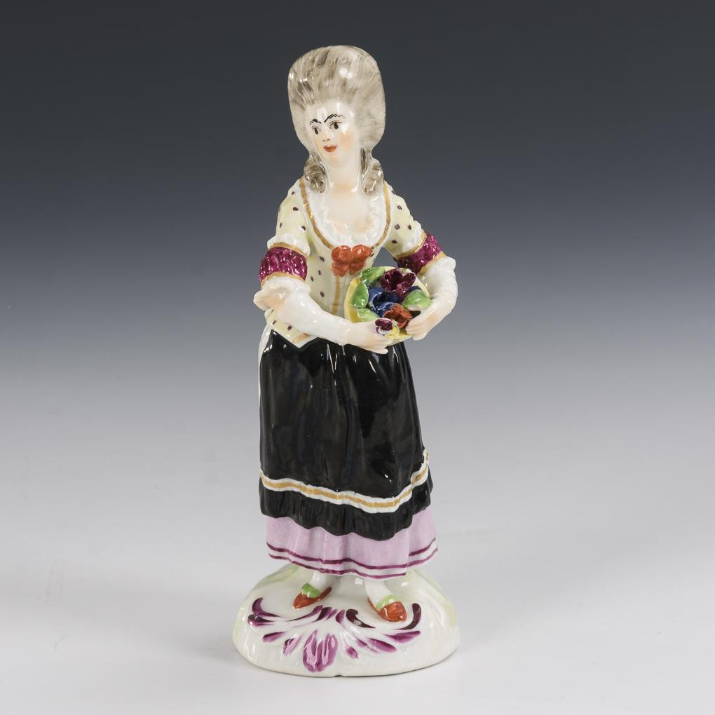 Standing rococo lady with flower basket. Flowers minimally bumped.